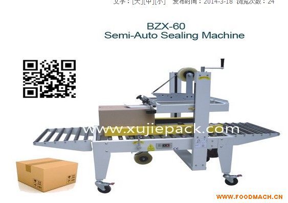 BZX-60半自動紙箱頂部封口機封箱機(透明膠帶)適用行業(yè):食品、制藥、日化、文具、塑料、電子等廠家