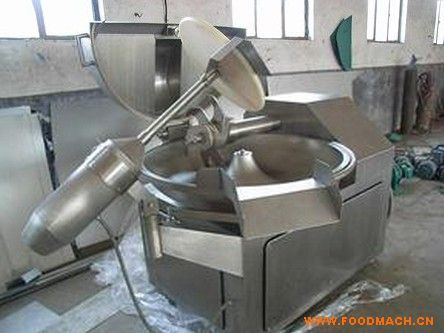 125型斬拌機利用斬刀高速旋轉(zhuǎn)的斬切作用,將肉及輔料斬成肉餡或肉泥,還可以將輔料,冰片,水與肉餡或肉塊在一起攪拌均勻。