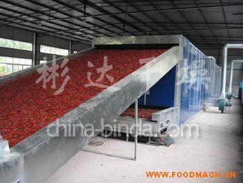 辣椒干燥生產線,彬達干燥設計的辣椒干燥機可采用整條辣椒進行烘干,使用脫水蔬菜帶式干燥機進行串聯(lián),低溫進行烘干,保證辣...