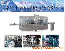 玻璃瓶三合一灌裝機組本機適合玻璃瓶皇冠蓋、鋁制螺紋蓋、三旋蓋或四旋蓋容器的灌裝和封口,適合各種飲料,例如果汁、酒、果...
