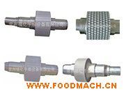 原料經(jīng)定量加料器均勻送入喂料斗,壓實機利用帶有穴眼孔的成對軋輥,彼此留有一定間隙,兩者以相同的轉(zhuǎn)速作反向旋轉(zhuǎn)。
