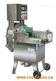 切菜機(jī)將根莖類切成厚、薄片、絲條、丁等外形。葉菜類之輸送帶轉(zhuǎn)刀速度采用變頻器控制,獨(dú)立控制。