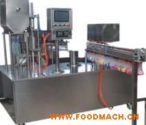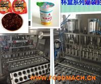 全自動果凍灌裝封口機,適用杯型:圓口杯、桃形杯、熊貓杯、心連心形杯、蝴蝶杯,也可定制異形杯。