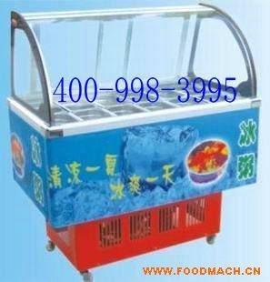冰粥展示柜機(jī)-冰粥機(jī)外形設(shè)計(jì)考究,箱體兩端圓潤(rùn)流線形,透明圓弧型鋼化玻璃,豪華典雅、氣派大方。透明玻璃門內(nèi)存冰粥一目了...