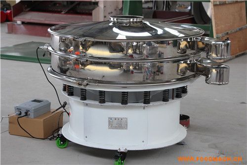 全脂奶粉振動(dòng)篩白砂糖除雜振動(dòng)篩白砂糖振動(dòng)篩(旋振篩),由立式振動(dòng)電機(jī)作為振動(dòng)源,電機(jī)上、下兩端安裝有偏心重錘,將電機(jī)的...