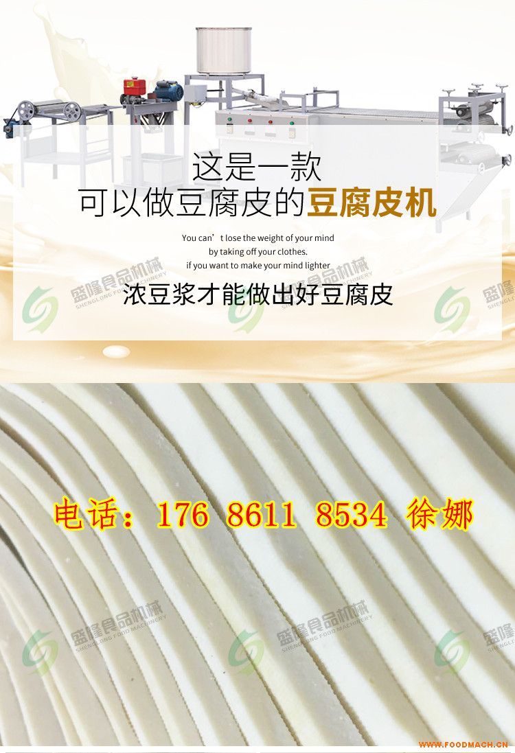 全自動豆腐皮機(jī)器,是一次完成攪腦、潑腦、送料、折疊包布、以及壓皮、扒皮、卷包布等工序1個(gè)人就可生產(chǎn)