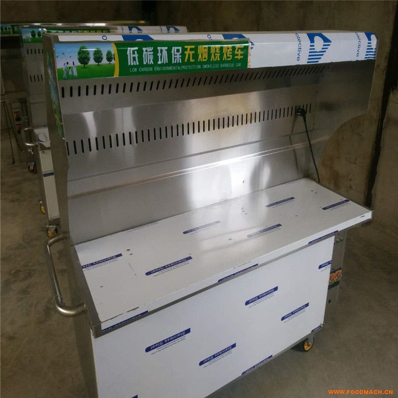 商用環(huán)保炭烤車廚房專用凈化器排煙罩該燒烤車是*燒烤店的不銹鋼無煙烤爐。爐體自帶排煙凈化裝置。排風(fēng)機(jī)部分能吸收燒烤時散發(fā)...
