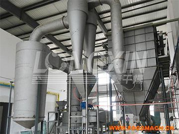 加熱后的熱風與螺旋加料器加入的溴氯海因濕物料接觸、碰撞,開始質熱交換、分離等一系列的物理變化,使得溴氯海因與所含濕份...