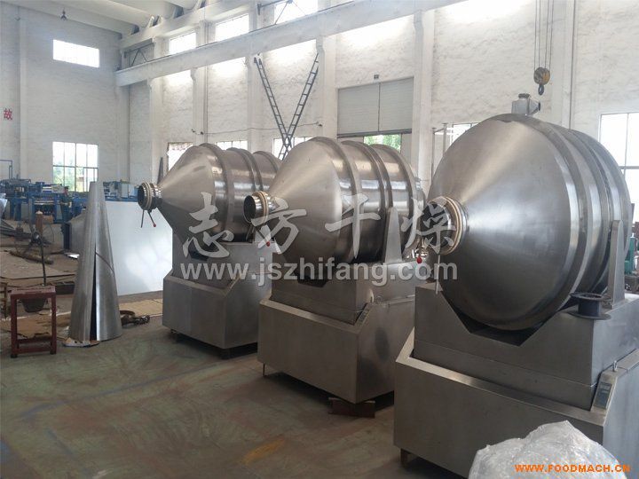 SYH系列三維運(yùn)動(dòng)混合機(jī)混合筒多方向運(yùn)動(dòng),物料無(wú)離心力作用,無(wú)比重偏析及分層、積聚現(xiàn)象,各組分可有懸殊的重量比,混合率高。