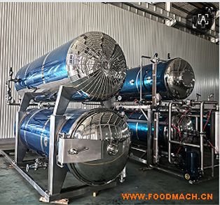 二鍋一罐水浴式殺菌鍋,高溫短時(shí)間滅菌,事先將殺菌罐內(nèi)的水加熱到滅菌所要求的溫度,從而縮短了滅菌時(shí)間,提高了工作效率。