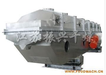 物料自進(jìn)料進(jìn)口進(jìn)入機(jī)內(nèi),在振動(dòng)力作用下,物料沿水平面流化床拋擲,向前連續(xù)運(yùn)動(dòng),熱風(fēng)向上穿過(guò)流化床同濕物料換熱后,濕空氣經(jīng)旋風(fēng)分離器除塵后由排風(fēng)1:3排出.干燥物料由排料進(jìn)口排出。