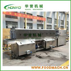 周轉(zhuǎn)箱進(jìn)入洗箱機(jī),經(jīng)過(guò)預(yù)洗、主清洗、漂洗、*后輸出,完成清洗過(guò)程。自動(dòng)洗箱機(jī)預(yù)洗過(guò)程是水泵將水從預(yù)洗水箱中吸出,經(jīng)噴嘴噴出,使食品或容器具各面收到清洗,洗掉雜物,清洗后的污水經(jīng)過(guò)濾分離流回水箱,雜物排出。自動(dòng)洗箱機(jī)主清洗過(guò)程是水泵將溫水從主清洗水箱中吸出,經(jīng)噴嘴噴出,使食品或容器具各面受到清洗,清洗掉剩余雜物及油污,清洗后的污水經(jīng)過(guò)濾分離流回水箱,雜物排出。漂清過(guò)程是漂洗水泵將熱水從漂洗水箱中吸出,經(jīng)噴嘴噴出,將被清洗物上的清洗劑等漂洗掉,同時(shí)對(duì)清洗物進(jìn)行消毒,水流至主清洗水箱。周轉(zhuǎn)箱清洗機(jī)輸送系統(tǒng)采用變頻調(diào)速電機(jī)帶動(dòng),調(diào)節(jié)電機(jī)速度以控制清洗時(shí)間。該機(jī)側(cè)導(dǎo)向機(jī)構(gòu)可調(diào)以,適應(yīng)不同規(guī)格清洗物品。