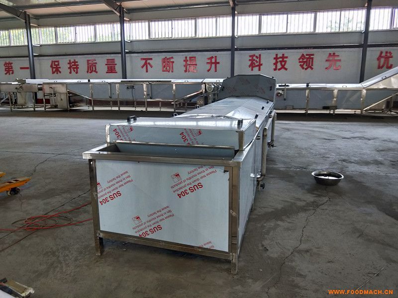 蒸煮流水線式我公司根據(jù)客戶需求及物料特性,量身設(shè)計的一款自動化設(shè)備。整套設(shè)備含無聊翻轉(zhuǎn)裝置、自動溫控裝置、溢流裝置、加熱裝置、清洗裝置、熱水儲存裝置等.........物料經(jīng)過蒸煮(汆水)可清除物料異味,收緊物料內(nèi)部組織結(jié)構(gòu),使物料香味不易流失。該設(shè)備采用變頻傳送,輸送穩(wěn)定,實現(xiàn)了自動連續(xù)生產(chǎn)的目的,且可根據(jù)產(chǎn)品的要求隨時調(diào)控,輸送網(wǎng)采用高強度優(yōu)質(zhì)不銹鋼,結(jié)構(gòu)牢固,承載物料重,極大地提高了生產(chǎn)效率