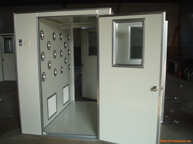 左右頂三吹風淋室和三吹貨淋室一樣,其實就是一個潔凈的小房間,自帶的風機在高速風量經(jīng)過高效過濾器過濾后,可以有效的去除工作人員及貨物表面的塵埃粒子,能有效防止?jié)崈羰业亩挝廴尽?