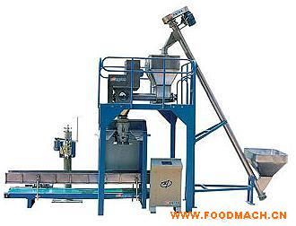 該機用荷重傳感器稱量,采用臥式雙螺旋喂料,此方法有效地解決了粉狀物料的反撲問題。同時又克服了立式螺旋計量精度不高的問題,適宜于面粉、調(diào)味品等粉狀物料的計量充填。該機配有氣動夾袋裝置,只須人工送袋,操作方便。