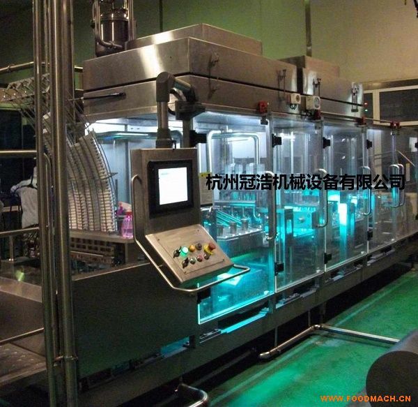 自動灌裝封口機(jī)主要功能:自動落容器-自動或人工充填--自動加片膜封口或自動卷膜封口切膜-自動收廢膜(使用卷膜時(shí)所配備的功能)-自動成品輸出。用戶可根據(jù)實(shí)際需要,選配一些其它功能(自動打碼或噴碼,封閉門窗,CIP清洗接口,殺菌裝置,充填保溫系統(tǒng),層流罩等)。