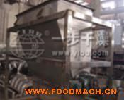 物料由加料器均勻地鋪在網(wǎng)帶上,網(wǎng)帶一般采用12-60目不銹鋼絲網(wǎng),由傳動裝置拖動在干燥機內(nèi)移動。干燥機由若干單元組成,每一單元熱風獨立循環(huán),部分尾氣由專門排濕風機排出,廢氣由調(diào)節(jié)閥控制,熱氣由下往上或由上往下穿過鋪滿物料的網(wǎng)帶完成熱量與質(zhì)量傳遞的進程,帶走物料水份。網(wǎng)帶緩慢移動,運行速度可根據(jù)物料溫度自由調(diào)節(jié),干燥后的成品連續(xù)落入收料器中。上下循環(huán)單元根據(jù)用戶需要可靈活配備,單元數(shù)量亦可根據(jù)需要選取。