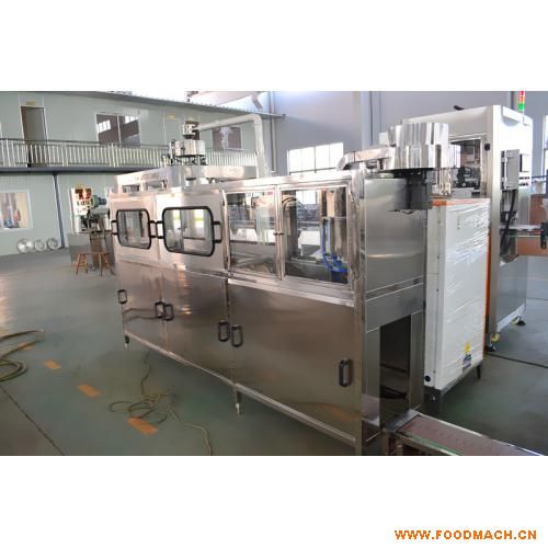 | QGF系列桶裝線是專從供3加侖,5加侖桶裝飲用水生產(chǎn)之用。型號(hào)有100型、200型、300型、450 型、600型、900型、1200型。整機(jī)集沖洗,灌裝,封蓋功能于一體,洗瓶機(jī)采用多道洗滌液噴射,達(dá)到洗滌、消毒的目的,消毒液可以循環(huán)使用。封口機(jī)可以自動(dòng)封口,輸送瓶蓋過程口配有衛(wèi)淋裝置,以確保瓶蓋無菌清潔。該系列生產(chǎn)線均可洗滌、消毒、灌裝、壓蓋、計(jì)數(shù)和輸出。具有功能齊全、設(shè)計(jì)新穎、自動(dòng)化程度高等特點(diǎn),是礦泉水,蒸餾水,純凈水生產(chǎn)的理想設(shè)備。整體采用優(yōu)質(zhì)不銹鋼,耐腐蝕,易清洗。主要電氣原件均采用SIEMEN |