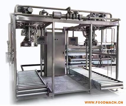 本設(shè)備主要由無菌灌裝系統(tǒng)、計量系統(tǒng)、輸送系統(tǒng)、控制系統(tǒng)、操作平臺等組成。包裝袋采用鋁塑復(fù)合無菌袋(1L-1000L)。使用蒸汽噴射方法對口袋和灌裝室進(jìn)行殺菌,確保灌裝室始終是處于無菌狀態(tài)的,無菌袋口殺菌、開啟、灌裝和封口都在無菌環(huán)境下完成。采用流量計量方式,在線稱重等方法滿足不同的灌裝容積精度要求。