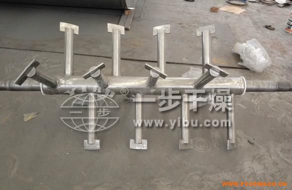 空心軸上密集排列著楔型中空漿葉,熱介質(zhì)經(jīng)空心軸流經(jīng)漿葉。單位有效容積內(nèi)傳熱面積很大,熱介質(zhì)溫度從-40℃到320℃,可以是水蒸汽,也可以是液體型:如熱水、導(dǎo)熱油等。間接傳導(dǎo)加熱,沒有攜帶空氣帶走熱量,熱量均用來加熱物料。熱量損失僅為通過器體保溫層向環(huán)境的散熱。楔型漿葉傳熱面具有自清潔功能。物料顆粒與楔型面的相對運(yùn)動(dòng)產(chǎn)生洗刷作用,能夠洗刷掉楔型面上附著物料,使運(yùn)轉(zhuǎn)中一直保持著清潔的傳熱面。漿葉干燥機(jī)的殼體為Ω型,殼體內(nèi)一般安排二到四根空心攪拌軸。殼體有密封端蓋與上蓋,防止物料粉塵外泄而充分發(fā)揮作用。傳熱介質(zhì)通過旋轉(zhuǎn)接頭,流經(jīng)殼體夾套及空心攪拌軸,空心攪拌軸依據(jù)熱介質(zhì)的類型而具有不同的內(nèi)部結(jié)構(gòu),以保證理想的傳熱效果。