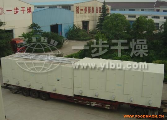 物料由加料器均勻地鋪在網(wǎng)帶上,網(wǎng)帶一般采用12-60目不銹鋼絲網(wǎng),由傳動(dòng)裝置拖動(dòng)在干燥機(jī)內(nèi)移動(dòng)。干燥機(jī)由若干單元組成,每一單元熱風(fēng)獨(dú)立循環(huán),部分尾氣由專(zhuān)門(mén)排濕風(fēng)機(jī)排出,廢氣由調(diào)節(jié)閥控制,熱氣由下往上或由上往下穿過(guò)鋪滿(mǎn)物料的網(wǎng)帶完成熱量與質(zhì)量傳遞的進(jìn)程,帶走物料水份。網(wǎng)帶緩慢移動(dòng),運(yùn)行速度可根據(jù)物料溫度自由調(diào)節(jié),干燥后的成品連續(xù)落入收料器中。上下循環(huán)單元根據(jù)用戶(hù)需要可靈活配備,單元數(shù)量亦可根據(jù)需要選取。