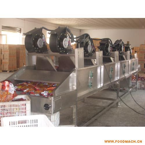 本機(jī)適用于水煮菜、調(diào)味菜、醬類、鹵肉、鹵蛋等采用塑料袋包裝的食品,經(jīng)過(guò)高溫(低溫)殺菌、冷卻后,用本機(jī)將袋包裝表面的水分吹千,以方便迅速裝箱入庫(kù)。