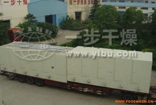 物料由加料器均勻地鋪在網(wǎng)帶上,網(wǎng)帶一般采用12-60目不銹鋼絲網(wǎng),由傳動裝置拖動在干燥機內(nèi)移動。干燥機由若干單元組成,每一單元熱風獨立循環(huán),部分尾氣由專門排濕風機排出,廢氣由調(diào)節(jié)閥控制,熱氣由下往上或由上往下穿過鋪滿物料的網(wǎng)帶完成熱量與質(zhì)量傳遞的進程,帶走物料水份。網(wǎng)帶緩慢移動,運行速度可根據(jù)物料溫度自由調(diào)節(jié),干燥后的成品連續(xù)落入收料器中。上下循環(huán)單元根據(jù)用戶需要可靈活配備,單元數(shù)量亦可根據(jù)需要選取。