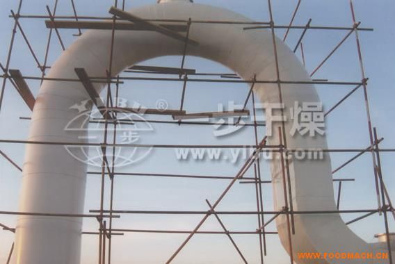在氣流干燥機中,熱氣流高速運行,使粉粒狀的物料懸浮其中,并得到干燥。由于氣流速度高,物料顆粒懸浮于氣流中,氣固之間的傳熱表面積極大,傳熱系數(shù)高,干燥時間短(多數(shù)物料的干燥過程只需幾秒鐘),所以特別適用于熱敏性物料的干燥。