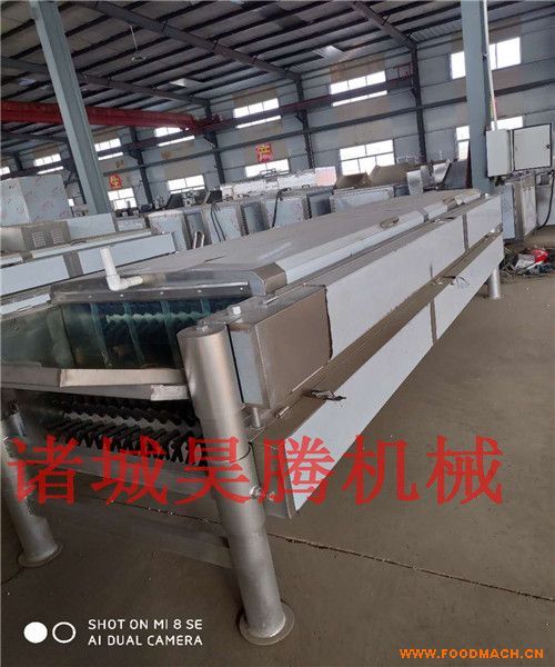 白條肉雞脫羽機(jī) 雞平板脫羽機(jī)是肉雞、鴨、鵝進(jìn)行脫毛工作的另一主要設(shè)備,為臥式轉(zhuǎn)輥結(jié)構(gòu),采用鏈條傳動,使上下兩排脫毛輥實(shí)現(xiàn)相對轉(zhuǎn)動,從而脫去雞毛、上下兩排脫毛輥的間距可以調(diào)整,以適應(yīng)不同雞鴨鵝的需要。
