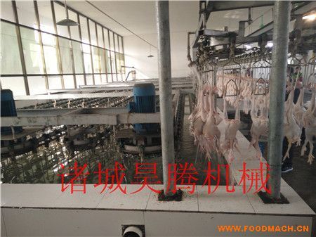 肉雞宰殺流水線 肉雞宰殺生產(chǎn)線:是由T型軌道,尼龍懸掛滑架,不銹鋼(或錳鋼鍍鋅)錨鏈條,不銹鋼掛雞(鴨、鵝、兔、鵪鶉)鉤,導向輪總成和調(diào)速減速機、鏈條漲緊裝置七大部分組成的,通過嚴格合理的安裝后,形成獨立的、能進行懸掛輸送作業(yè)的家禽(或兔類)宰殺、浸燙、脫毛、掏臟、預冷、分割流水線。生產(chǎn)能力(根據(jù)長度)可達到500-4000只/時