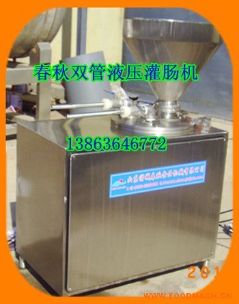 138+6364+6772 小型液壓灌腸機(jī)價格,實用型液壓灌腸機(jī),灌腸機(jī)專業(yè)廠家,哈爾濱紅腸灌腸機(jī),面腸灌腸機(jī),選擇灌腸機(jī)就找春秋機(jī)械。春秋液壓灌腸機(jī)廣泛適用各種肉腸、魚腸、素腸、面腸、蔬菜腸的灌制。尤其對較干的料餡相對其他灌腸機(jī)效率更佳。該機(jī)上部設(shè)有貯料斗、碟形閥,可實現(xiàn)不掀蓋連續(xù)灌制,提高了工作效率。