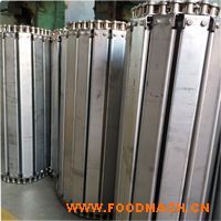 3.鏈板式網(wǎng)帶非常堅(jiān)固,由不銹鋼鏈條驅(qū)動,采用不銹鋼板材生產(chǎn),適合用于輸送細(xì)小的高密度物件,輸送過程中運(yùn)轉(zhuǎn)平穩(wěn),安裝更換方便,使用壽命較長。用于中等和大負(fù)荷輸送。鋼板彎曲形成荷葉,使用支軸將合葉和鏈條穿在一起。兩端的鏈條可以使用開口銷或者墊圈來固定,使用開口銷方便拆卸,維護(hù)方便。