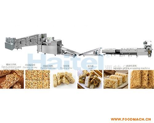 本機(jī)根據(jù)國(guó)內(nèi)外糖果廠的實(shí)際需要,引進(jìn)國(guó)外機(jī)械的先進(jìn)技術(shù),制造出新一代花生、芝麻、奶糖成套流水線生產(chǎn)設(shè)備,整機(jī)由進(jìn)料輸送、壓片機(jī)、冷卻輸送柜、分粒成型機(jī)四部分組成。均配有變頻調(diào)速控制,結(jié)構(gòu)合理、操作、維修方面,是當(dāng)今糖果生產(chǎn)如:(四方形、長(zhǎng)方形)奶糖、牛扎糖、花生糖、芝麻糖、泡泡糖等理想設(shè)備。