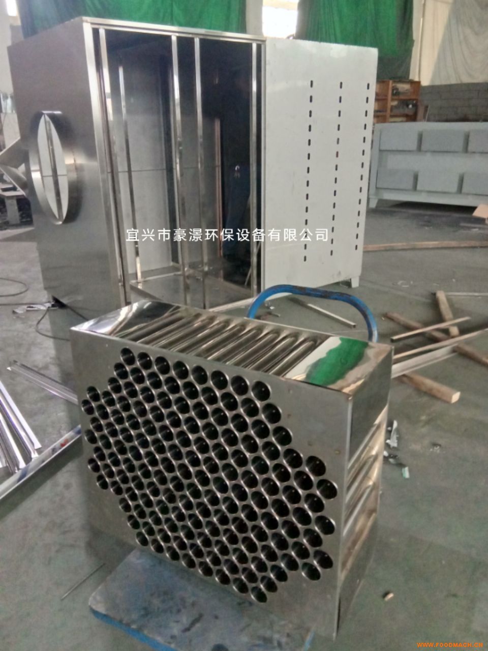 含煙廢氣被風(fēng)機(jī)吸入管道后,首先進(jìn)入初級(jí)裝置——凈化整流室,采用重力慣性凈化技術(shù),室內(nèi)的特殊結(jié)構(gòu)逐步對(duì)大粒徑污染物進(jìn)行分級(jí)物理分離,并且均衡整流。分離出的大顆粒油滴在自身重力的作用下流入油槽排出。剩余的小粒徑污染物進(jìn)入次級(jí)裝置——高壓靜電場(chǎng),靜電場(chǎng)內(nèi)部分兩級(jí),--級(jí)為電離器,強(qiáng)電場(chǎng)使微粒荷電,成為帶電微粒,這些帶電微粒到達(dá)第二級(jí)集塵器后立刻被收集電極吸附,且部分炭化。同時(shí),高壓靜電場(chǎng)有效地降解有害成份,起到消毒、除味作用。-后通過(guò)濾網(wǎng)格柵,潔凈的空氣排出室外。二級(jí)式靜電吸附型,用來(lái)去除細(xì)微粒徑的碳?xì)浠衔锖推渌諝庵械碾s粒。它的二級(jí)式是指電離段與收集段,每個(gè)電離段由一系列鎢鋼線組成,安裝在一系列接地板中間,并通給高壓直流電。大氣中的微粒在通過(guò)電離器的強(qiáng)力靜電場(chǎng)時(shí),被電離并帶有正或負(fù)電荷。