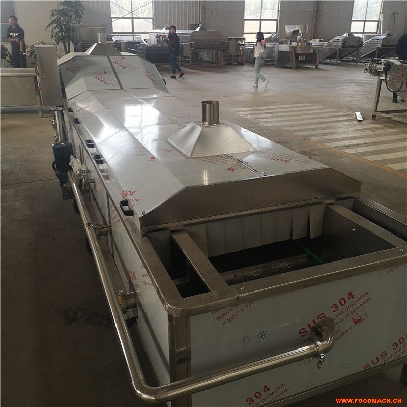 整機(jī)采用優(yōu)質(zhì)SUS304不銹鋼,溫度、速度可根據(jù)工藝要求設(shè)定、自動控制溫度及運(yùn)行。該機(jī)運(yùn)行平穩(wěn),不銹鋼強(qiáng)度高、伸縮性小、不易變形、易保養(yǎng)等特點(diǎn)、操作維護(hù)方便等特點(diǎn), 勞動強(qiáng)度低,人力少,自控化程度高,溫度可在98℃內(nèi)自動調(diào)控,上下層水溫差較小,產(chǎn)品質(zhì)量容易控制,是食品加工行業(yè)的理想設(shè)備。通過輸送可實(shí)現(xiàn)自動化操作,節(jié)約人工、提高產(chǎn)量。