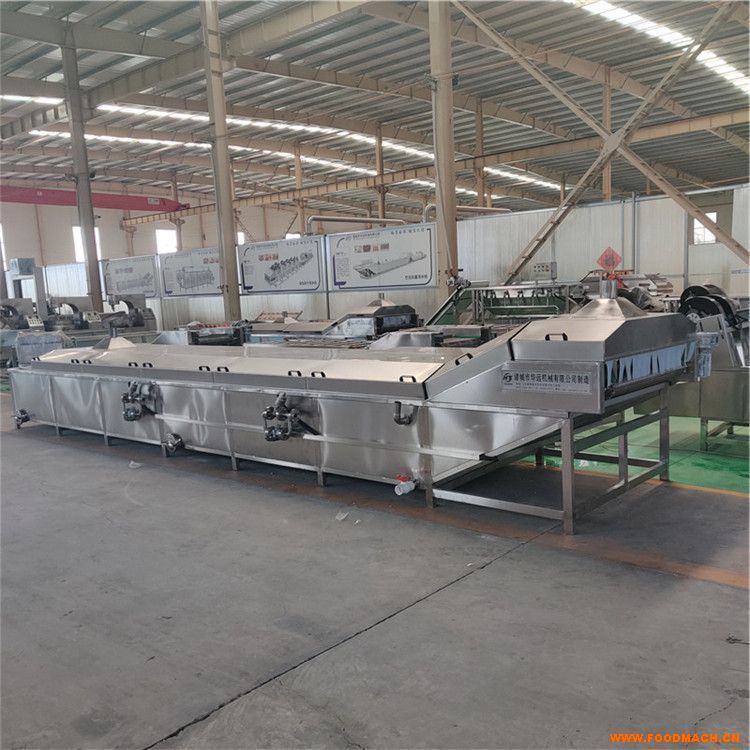 蒸煮線適用于各類海產(chǎn)品、蔬菜等物料的蒸煮工藝,具有溫控性好,效率高,節(jié)省人工等特點(diǎn),本機(jī)采用304不銹鋼制作,采用蒸汽加熱方式,水溫控制為95-100°C ,水煮時間約為15-20分鐘。設(shè)備抑酶護(hù)色并及時蒸煮定型,使產(chǎn)品保持原有的自然色澤。