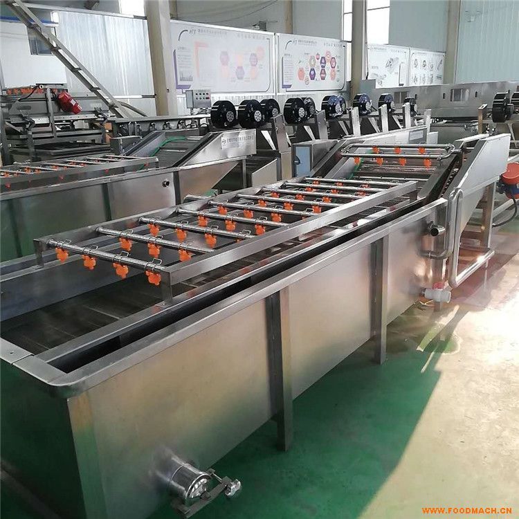 物料進入水槽,在高壓水流和強力氣泡的作用下,被充分打散、翻滾、清洗、傳送。從物料表面洗掉的泥沙沉入底部的隔離艙,不會發(fā)生翻揚回流造成再度污染,在沉淀雜質(zhì)的處理上,通過循環(huán)水泵的水循環(huán),讓雜質(zhì)進入過濾箱,水箱的過濾裝置可以自由的拆卸,二次過濾讓雜質(zhì)遺留在水箱處,漂浮物通過上端的溢水口排除,漂流不出的通過弧形過濾網(wǎng)攔截,保證水池干凈的同時,能夠及時的排出雜質(zhì),保證產(chǎn)品清洗效果。產(chǎn)品通過網(wǎng)帶輸送出口處,配備有二次清水清洗,在保證產(chǎn)品清潔度的同時,更能及時給設備槽體內(nèi)補充水源,保證設備內(nèi)的水源清潔度,達到清洗效果。本設備用于新鮮番茄、菠菜、白菜蘋果、葡萄、榨菜、洋蔥、辣椒以及其他根塊狀果品蔬菜的漂洗