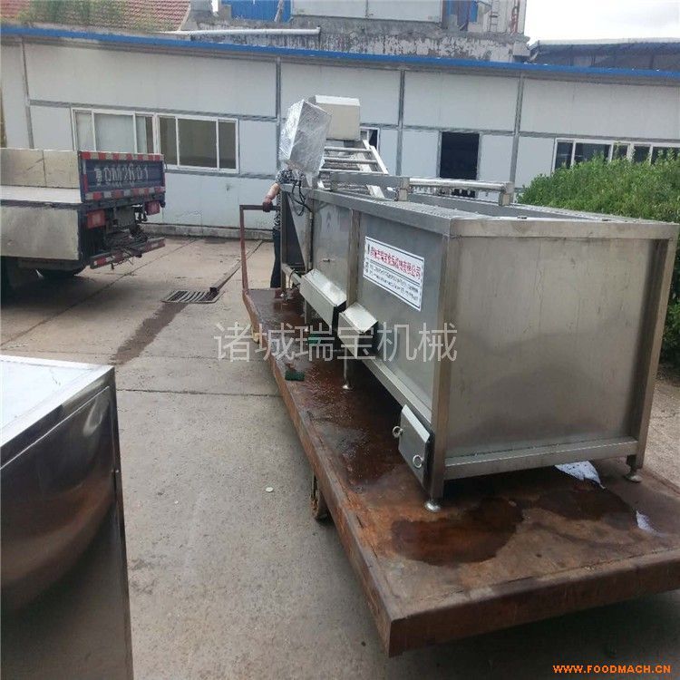 氣泡清洗機(jī)是大棗,蔬菜,水產(chǎn)生產(chǎn)線中的重要產(chǎn)品,主要用于大棗,蔬菜,水產(chǎn)的清洗。氣泡清洗機(jī)的原理主要是利用箱體前部分設(shè)備箱體中注適量的水,經(jīng)過(guò)加熱管將水溫加熱,原料在經(jīng)過(guò)箱體時(shí),會(huì)與氣泡機(jī)和水的結(jié)合作用下做翻滾狀態(tài),并隨網(wǎng)帶不斷向前推進(jìn),在出水面時(shí),*設(shè)有噴淋頭,高壓沖洗。
