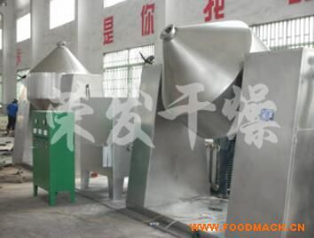 主體設(shè)備選用雙錐回轉(zhuǎn)真空干燥機為藍本,罐體在運行過程中交替正反旋轉(zhuǎn),符合結(jié)晶干燥時物料處理均勻性要求,避免色母粒相互粘連等問題。罐體內(nèi)部光滑無死角,便于清潔,適合不同顏色的色母粒在同一設(shè)備內(nèi)完成。