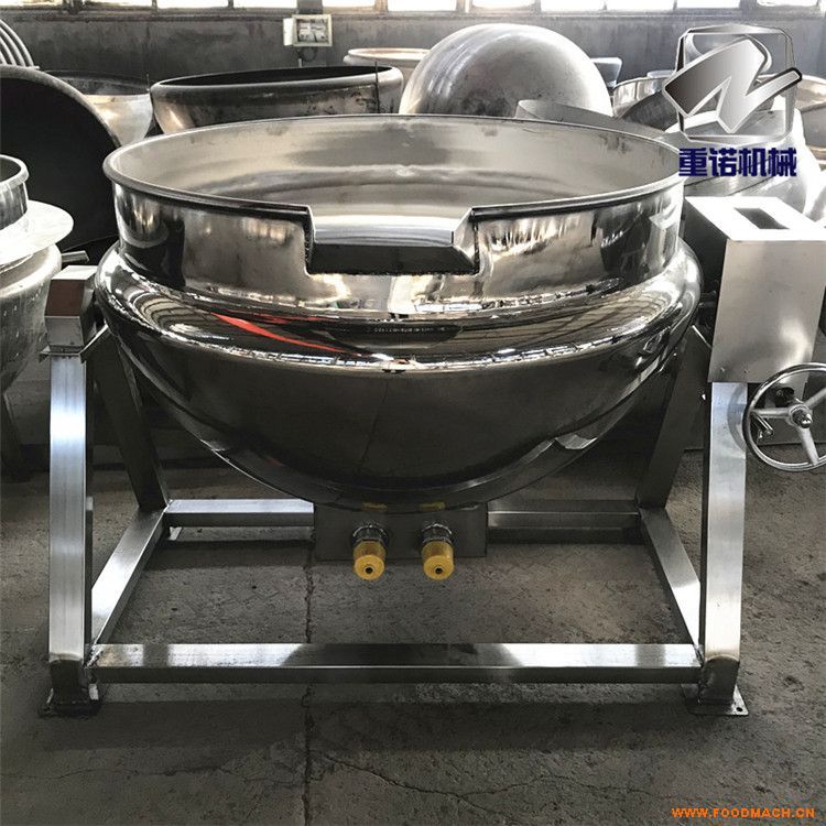 可傾式電加熱夾層鍋 食品蒸煮設(shè)備 夾層鍋可定制安裝步驟及使用注意事項(xiàng):1、選好安裝廠地、水泥地面為水平,鍋體安放穩(wěn)后打底角螺栓固定。2、擰緊撐架的兩顆緊定螺釘,搖轉(zhuǎn)鍋體時(shí),兩端的進(jìn)水管和出水管不允許隨鍋轉(zhuǎn)動(dòng)。3、安裝完畢,對(duì)攪拌式夾層鍋,應(yīng)作空車試運(yùn)檢查,待各傳動(dòng)部件運(yùn)轉(zhuǎn)正常后,方可投產(chǎn)使用4、進(jìn)氣后,如接頭處漏氣,可旋緊螺帽,直到不漏為止。5、使用蒸氣壓力,不得長(zhǎng)時(shí)間超過(guò)定額工作壓力。6、進(jìn)汽時(shí)應(yīng)緩慢開啟進(jìn)汽閥,直到需用壓力為止,冷凝水出口處的截止閥,如裝有疏水器,應(yīng)始終將閥門打開;如無(wú)疏水器,則先將閥門打開直到有蒸氣溢出時(shí)再將閥門關(guān)小,開啟程度保持在有少量水汽溢出為止。7、電加熱夾層鍋對(duì)安全閥,可根據(jù)用戶自己使用蒸氣的壓力,自行調(diào)整。8、蒸煮鍋在使用過(guò)程中,應(yīng)經(jīng)常注意蒸氣壓力的變化,用進(jìn)汽閥適時(shí)調(diào)整。9、停止進(jìn)氣后,應(yīng)將鍋底的直嘴旋塞開啟,放完余水。10、夾層鍋,每班使用前,應(yīng)在各轉(zhuǎn)動(dòng)部位加油;攪拌式夾層鍋鍋體面上的部件,建議采用熟菜油。
