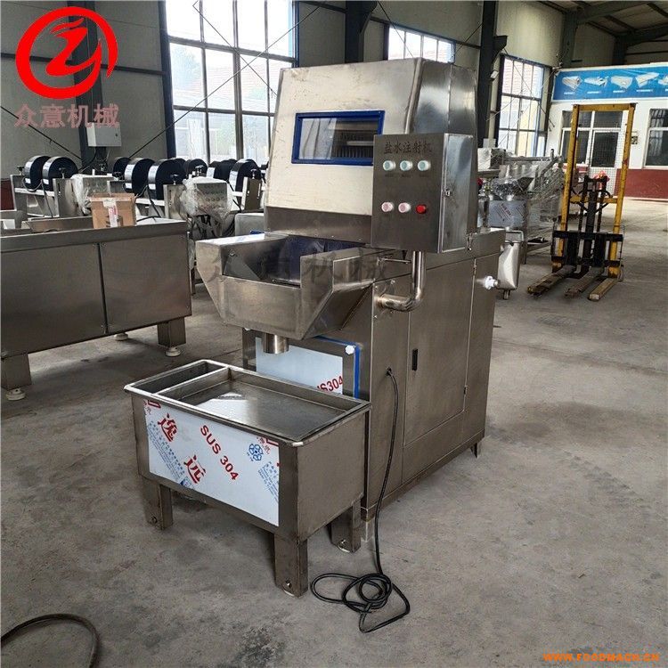 鹽水注射機(jī)性能穩(wěn)定可靠性、使用好、功能多、304不銹鋼制作,是通過(guò)機(jī)械裝置把腌制劑通過(guò)注射針注射進(jìn)產(chǎn)品中,技術(shù)含量、故障率低、絕緣等級(jí)好、節(jié)能降耗等。使之在產(chǎn)品內(nèi)均勻分布達(dá)到腌制、增加調(diào)味、生產(chǎn)能力強(qiáng)、噪聲低、電氣系統(tǒng)、保持肉食營(yíng)養(yǎng)。設(shè)備安全,效率快;結(jié)構(gòu)設(shè)計(jì)合理。廣泛應(yīng)用于牛肉、豬肉、鴨胸、烤肉、火腿等從事肉食加工的食品企業(yè),結(jié)構(gòu)設(shè)計(jì)先保持肉食營(yíng)養(yǎng)、強(qiáng)化口感的目的。