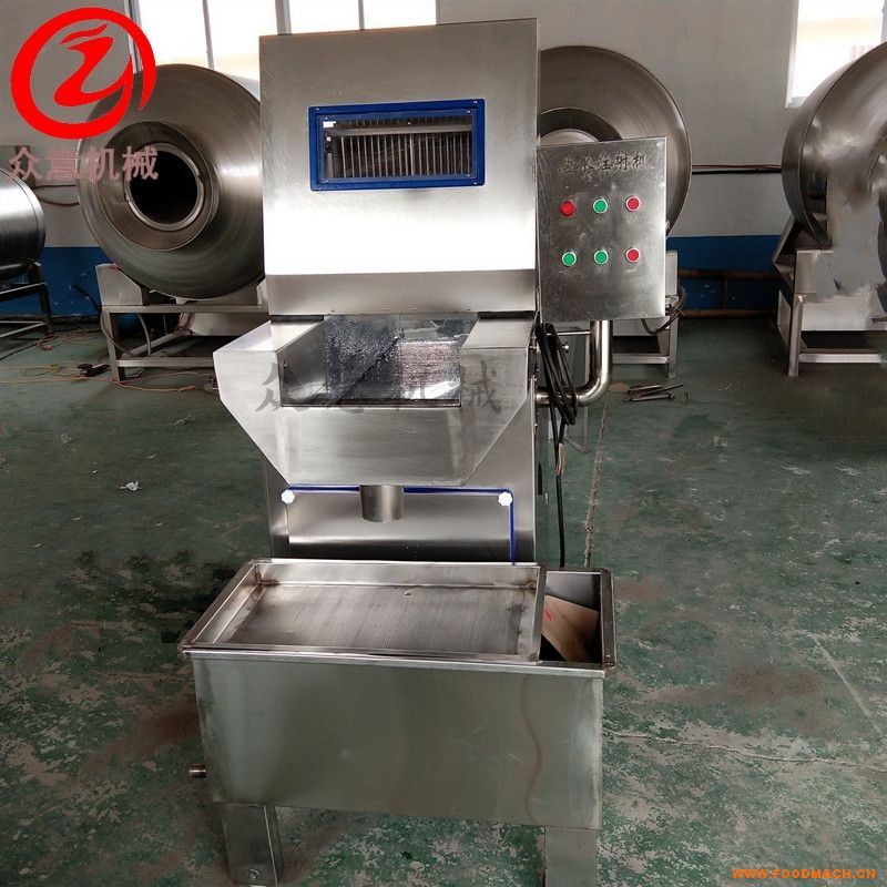 本機采用不銹鋼材料設(shè)計合理,結(jié)構(gòu)嚴謹,操作方便,清洗方便,清潔衛(wèi)生,高有自動保護裝置,當注射針碰到硬物時注射針隨之抬起,不受損壞。鹽水注射機是肉食加工生產(chǎn)的關(guān)鍵設(shè)備,主要用于肉類的腌制過程,用以提高腌制的效率和質(zhì)量,并具有增加產(chǎn)品出品率的功能。因此,作為現(xiàn)代化食品加工生產(chǎn)的今天,要追求質(zhì)量,追求效率,追求利率,鹽水注射機是您生產(chǎn)肉類產(chǎn)品過程中不可缺少的伙伴。