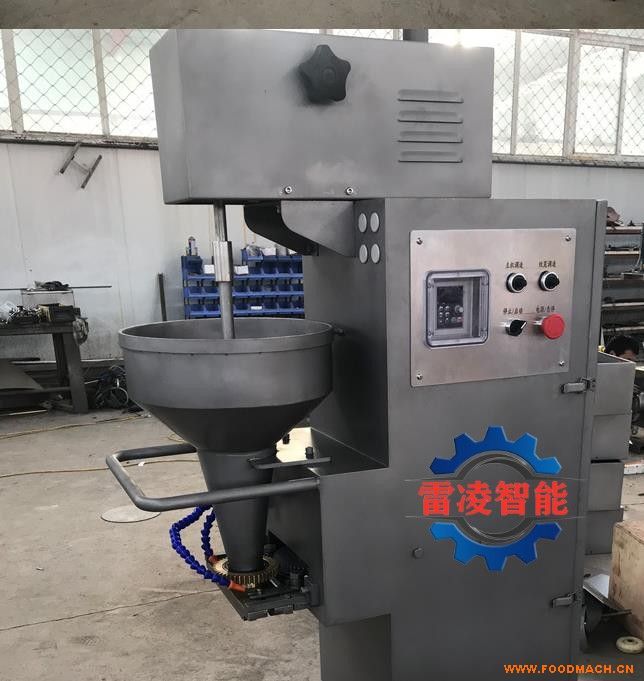 肉丸機(jī)主要用于雞肉丸、魚丸、蝦丸、豬肉丸、牛肉丸、羊肉丸、蔬菜丸、寵物食用肉丸等丸子類產(chǎn)品,更適合獅子頭的加工成型。性能優(yōu)點:通用性好,適用范圍廣、生產(chǎn)效率高:不銹鋼制作,安全衛(wèi)生;美觀大方、堅固耐用、提作維修方便,大小可調(diào)、速度可調(diào),可變頻調(diào)速;可實現(xiàn)左右擺頭各30°,更適合不同場合的丸子加工:模具更換為開拉門式,更方便。產(chǎn)品優(yōu)勢:1、該機(jī)模擬人工用匙子成型的原理,多年經(jīng)驗設(shè)計制造而成,生產(chǎn)的丸子,具有密度小,圓度好,外表光滑等特點。2、只要把肉漿放入料斗內(nèi),開機(jī)兩三分鐘即可自動制成肉丸,制品口感爽脆,味道鮮美,有彈性,色澤潔白。3、該機(jī)采用304不銹鋼制造,經(jīng)久耐用,外形美觀,符合國家食品衛(wèi)生標(biāo)準(zhǔn)。4、制品成型丸子u16-50mm、餡料重量、生產(chǎn)速度,均能自動調(diào)節(jié),產(chǎn)量可達(dá)200-300kg/h,相當(dāng)于12到18個工人同時手工制作的效率5、該機(jī)產(chǎn)出的肉丸具有餡料均勻,丸子圓度好等優(yōu)點。機(jī)器運(yùn)作時,丸子直接落放盤中,減少人體對制品的接觸,更安全衛(wèi)生。6、可以制作各種口味的肉丸、魚丸、豬肉丸、生肉丸、雞肉丸、貢丸等。品種繁多,口味可以自由變換,這在原有的基礎(chǔ)上大降低了生產(chǎn)成本。7、自動化結(jié)構(gòu)合理,一人、兩人均可操作。拆裝、維修、清洗方便。