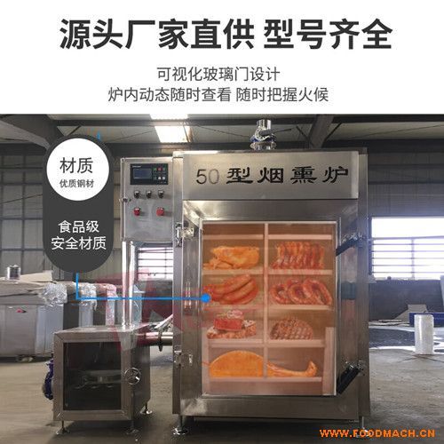 煙熏爐主要是由爐體、循環(huán)風系統(tǒng)、加熱系統(tǒng)、電控系統(tǒng)等組成。