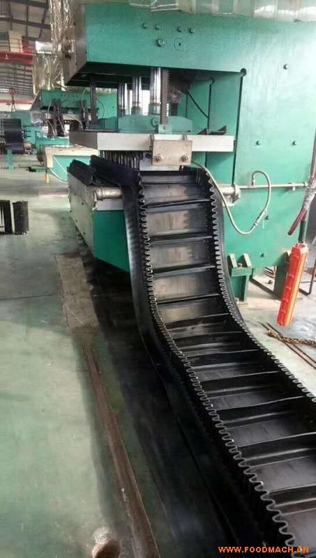 工業(yè)擋邊輸送帶, 是由基帶、擋邊、橫隔板3部分組成。擋邊起防止物料測滑撒落的作用。為便于繞過滾筒,檔邊設(shè)計成波紋狀;橫隔板的作用是承托物料,為了實現(xiàn)大傾角輸送,采用T型TC型。檔邊和橫隔板是用二次硫化的方法與基帶連接的,具有很高的連接強度。用于輸送易散落的粉狀、粒狀、小塊狀、糊狀及液態(tài)狀物料。其特點:適用于傾角0°~90°散裝物料的輸送;具有使用范圍廣、占地面積小、無轉(zhuǎn)運點、減少土建投資、維護費用低、維修容易輸送量大連續(xù)化、高效率、大傾角運輸,操作安全,使用簡便,,運費低廉,并能縮短運輸距離,降低工程造價,節(jié)省人力物力等特點;解決了普通帶和花紋帶所不能達到的輸送角度;還可根據(jù)使用環(huán)境,設(shè)計成完整、獨立的輸送系統(tǒng),避免了間斷輸送和復(fù)雜輸送的提升系統(tǒng)?裳厮、傾斜、垂直和變角方向輸送各種散裝物料,從煤、礦石、沙子到化肥和糧食等。物料粒度不限,可從很小的粒度到400mm的大粒度,輸送量可從1立方米/小時到6000立方米/小時。