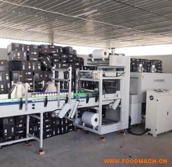 飲料生產(chǎn)線配套膜包機 pet瓶熱收縮包裝機 直線式熱收縮膜包裝機通過進料輸送機構連接生產(chǎn)線,分包機構按包裝規(guī)格分組,閘門式放料,撥桿機構配合輸送,運行中自動整形,運行中自動套膜封切,自動完成熱收縮及冷卻工藝。