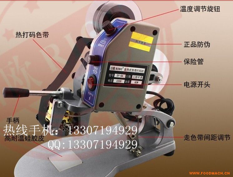 HP-241S 手壓色帶打碼機(jī) ,手動(dòng)直熱式色帶打碼機(jī)適用于食品、飲料、等行業(yè)產(chǎn)品,打印生產(chǎn)日期、保質(zhì)期、批號(hào)、重量等。廣西小型生產(chǎn)日期打碼機(jī)采用不磨損、不腐蝕的特殊合金字模,可在各種塑料袋、鋁箔、紙袋、皮革等制品上打印出牢固的清晰的字符。并具有使用簡(jiǎn)單、換字方便、干凈衛(wèi)生,易于維修保養(yǎng)等功能