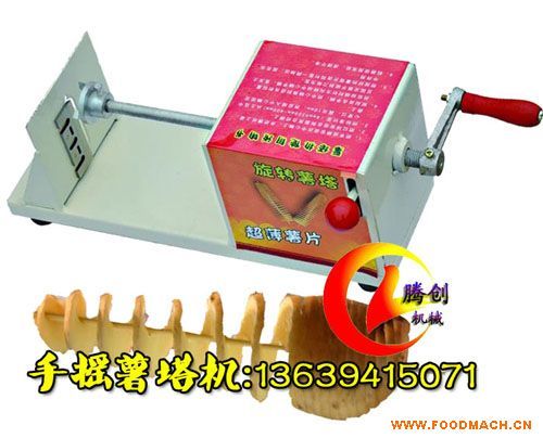 手搖旋轉(zhuǎn)薯塔機,黃金薯塔機又稱為旋風(fēng)薯塔機是專業(yè)切薯塔、切薯片、切土豆花的機器,薯塔*初是一種源自于南非的美食,新近風(fēng)靡于臺灣,是用整顆土豆,利用特制機器切成螺旋形片狀,穿上竹簽拉展開后達到30公分長,現(xiàn)削現(xiàn)炸而成。