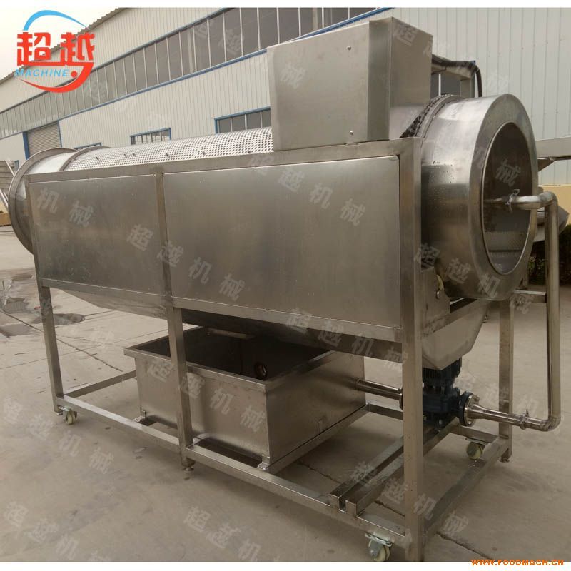 滾桶清洗機 滾筒蔬菜清洗機 適應(yīng)于各食品行業(yè),制藥行業(yè),海產(chǎn)品深加工行業(yè)等企業(yè)對各種物料進行清洗處理的大型流水線工作。清洗的物料由進料斗到滾筒內(nèi),隨滾筒的轉(zhuǎn)動而在滾筒內(nèi)不斷翻滾相互摩擦,上有噴淋水的沖洗和氣泡翻浪使物料表面的污垢和泥砂脫落,由滾筒的篩網(wǎng)洞孔隨噴淋水經(jīng)排水斗排出。