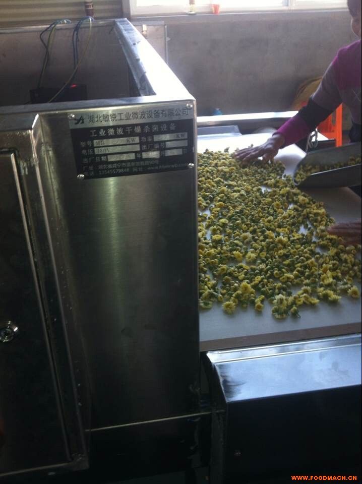 能更多保持茶氨基酸、維生素C的含量使加工后的菊花 , 茶葉 金銀花色澤更加鮮艷,外形自然舒展,美觀,提高菊花茶葉金銀花的品質(zhì).試驗結(jié)果表明,微波殺青與炒青方式加工的茶葉金銀花品質(zhì)良好,無明顯差異,但微波殺青的時間短(為炒青時間的1/8)可以連續(xù)進行.而蒸汽殺青由于蒸汽含水量高,原料外層受高溫影響,因此殺青后的菊花茶葉金銀花幾乎無減重,部分葉綠素受破壞,原料所含營養(yǎng)物質(zhì)隨冷凝水而部分流失,品質(zhì)不太理想.微波殺青的優(yōu)點就是快速、高效,而且由于時間短,菊花茶葉金銀花的有機質(zhì)流失少,菊花茶葉金銀花的質(zhì)量就有了保證,茶葉金銀花也不會因為制作時間太久而產(chǎn)生澀味.那么微波殺青的速度到底有多快?根據(jù)國內(nèi)外資料顯示及我司客戶實際經(jīng)驗所得,其速度和效能是常規(guī)加熱方法的4~20倍.具體地說,將發(fā)酵后的茶葉金銀花用微波殺青,一般3分鐘內(nèi)就可以完成了,目前還沒有發(fā)現(xiàn)有其它的相關(guān)設(shè)備能達到這個速度..